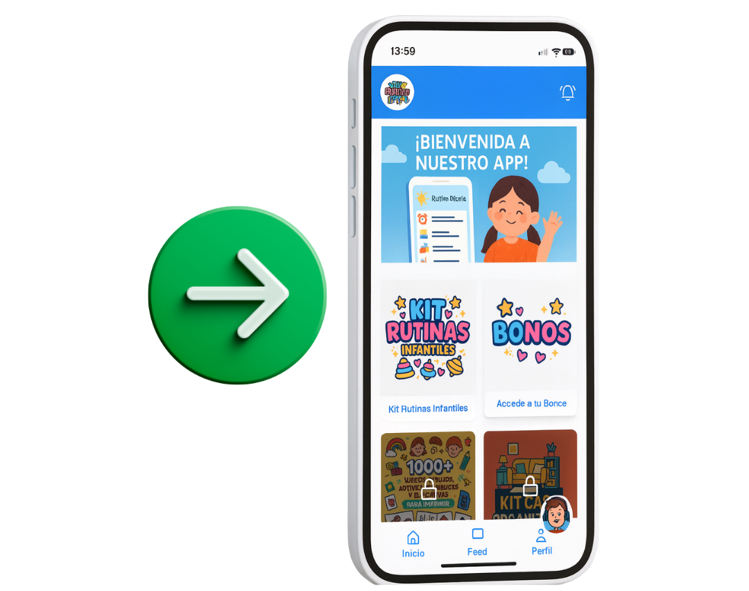 Es un conjunto de rutinas y herramientas en PDF para ayudar a tu hijo a ser más organizado, enfocado e independiente. Incluye modelos de rutinas visuales, dinámicas para la higiene del sueño y tarjetas para niños que aún no leen, además de bonos especiales.